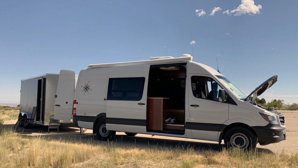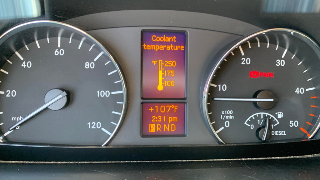 Got the hood up on the van letting things cool…spent almost all day driving in 100 to 107 degree temps across NM and into Texas..the van’s A/C is awesome.