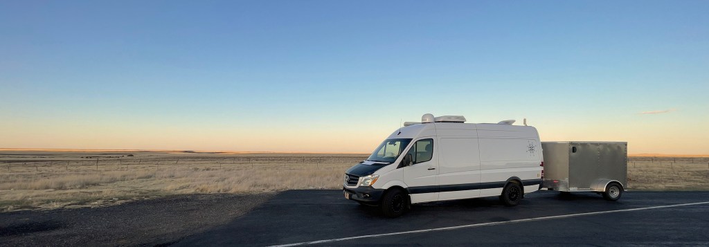One of the reasons I stopped here was the winds had just about killed me…30 to 50 mph head and crosswinds all day…spent most of the day with the overdrive turned off in the van and using only 4th gear…the engine monitor said in that gear (2400 rpms) the engine was working very easy and right in the middle of the high torque range…perfect…I’m only traveling around 57 mph anyway so it was all good…even with all the headwinds I still averaged around 17 mpg pulling the trailer.