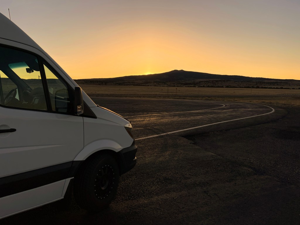 Around 1830 this evening I made a small pot of pasta for dinner…a few more trucks were starting to pull in near me so I moved down to the very north end of the huge parking area…found a nice secluded spot with a nice view over the grasslands…a cuppa coffee with the side door open was really nice…wind has stopped and temps are dropping…peaceful now…I’m right by the train tracks but I don’t mind…I love seeing trains go by and if they wake me up in the night I just listen then go right back to sleep…all is good in the world.