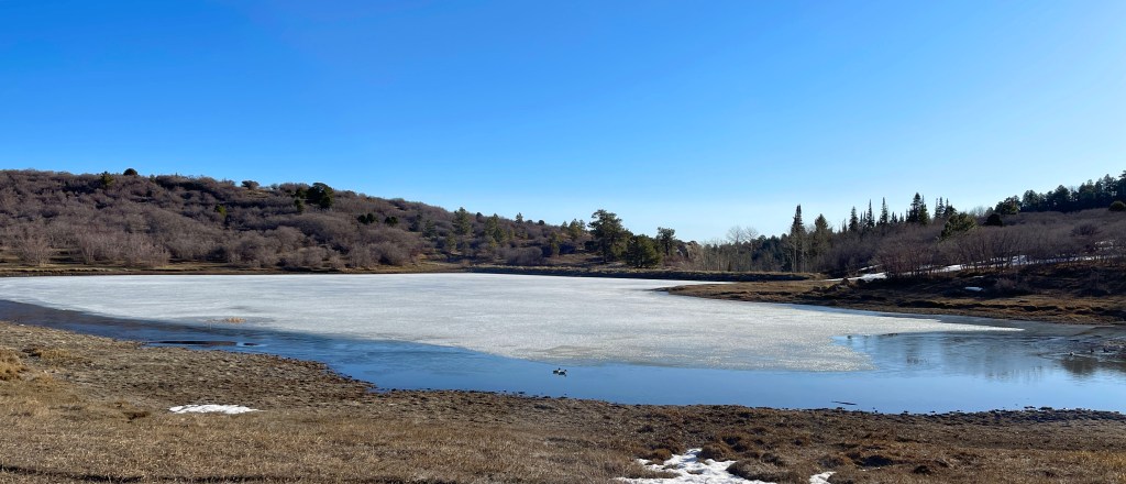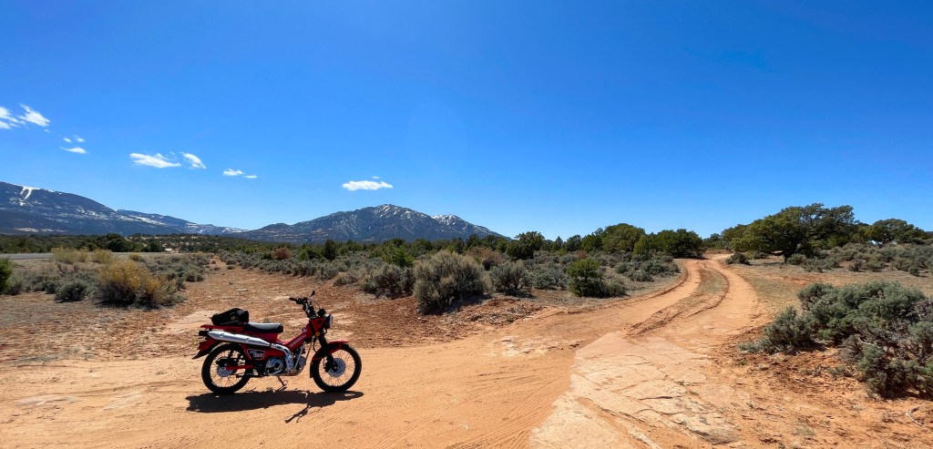 8 April…After a LONG day on the road I’m finally in Monticello…all set up at one of my favorite boondocking places…the overlook in the Abajo Mountains….temps are falling into the 30’s tonight…wind is still blowing…had pancakes for dinner and a nice walk around the area…will be set up here until Saturday…gonna take the little bike out for a putt tomorrow…the weather should be nice and crisp…reactivated my DISH Network subscription…now I can watch Forensic Files and The First 48 :)…I’ve not had any rain on the trip so far…amazing…still lots of snow around the overlook.