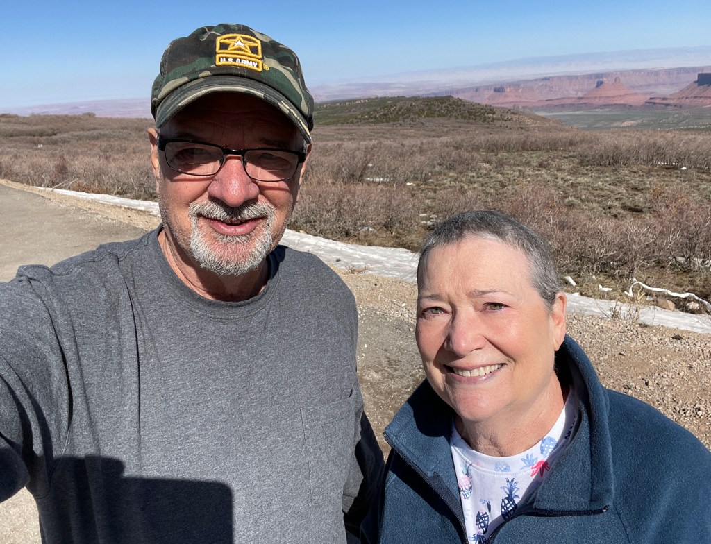 Me and my sister Debbe at the Castle Valley overlook on the La Sal Loop Road today.