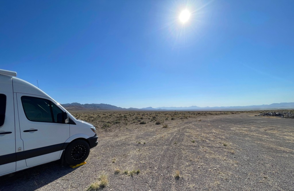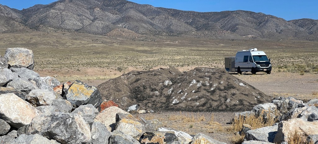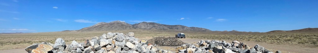 19 April…drove up to the Pahraganat Wildlife Refuge today to see if the nice campsite I stayed at last time was open…nope…headed another 56 miles to a boondocking site I love on the Extra Terrestrial Highway (Nevada 375) about 2.5 miles south of the little community of Rachel…Rachel is the UFO capital of the world and right outside Area 51…I’m set up on a plateau at 6000 feet…the wind is HOWLING…salad for lunch…pork tenderloin and beans for supper later…internet is SMOKIN FAST here on the side of the mountain…don’t have a clue where the tower is….here’s a few shots around the campsite…BTW the drive along the shores of Lake Mead is absolutely a road not to be missed…simply beautiful.