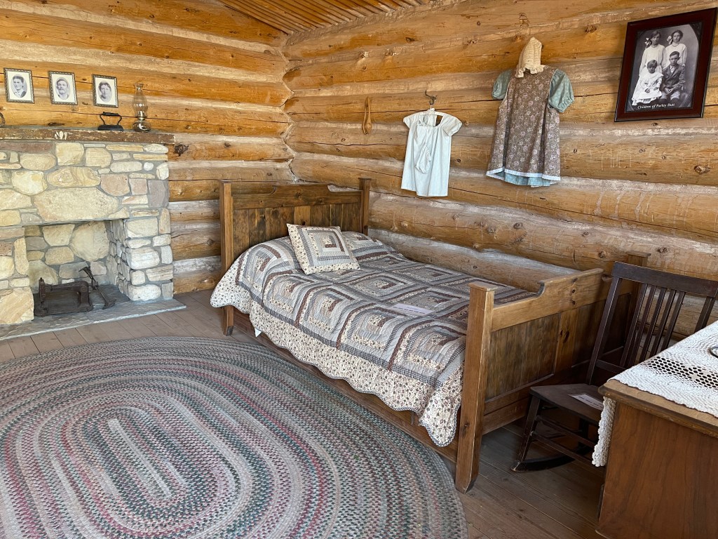 I took walk across the street from the RV park to the Bluff Fort center…lots of original cabins from the early settlers complete with their belongings and furnishings.