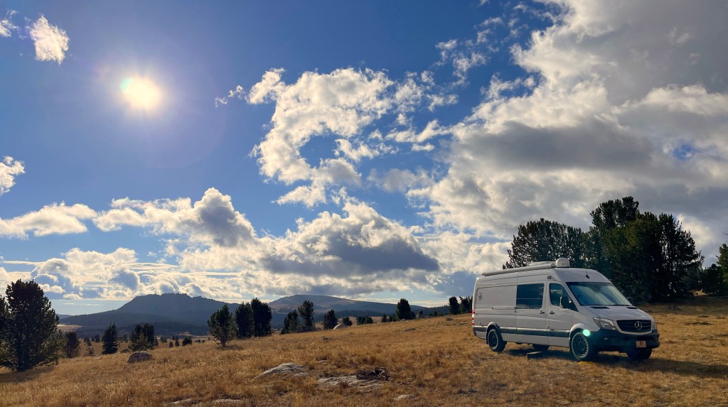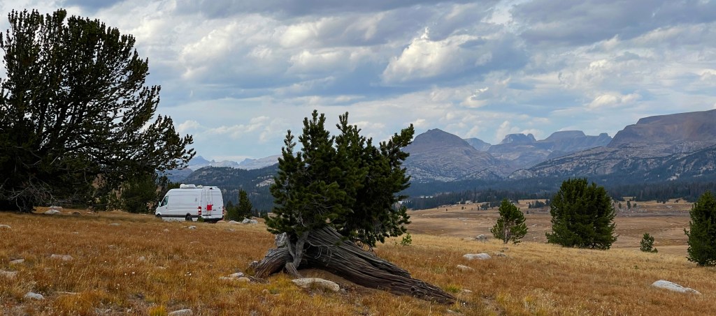 I’m right near the border of Wyoming and Montana in the Shoshone National Forest…sign at the turnoff said I can camp here for 16 days…totally free…saw a few side-by-sides using the gravel roads in the area…looked like families out enjoying some off road exploring…nice.