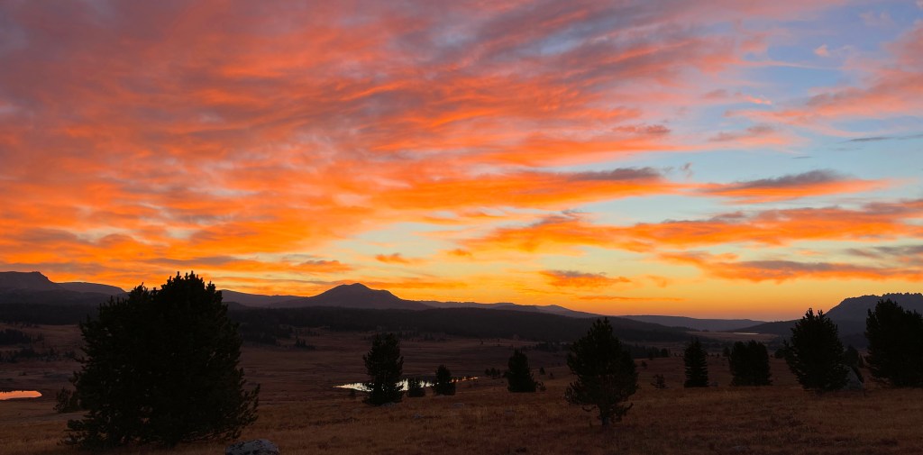 Pulled out of camp around 0700 this morning…glorious weather…temp 38F…I’m heading up and over the Beartooth Pass to Laurel MT…another Walmart for the night cause I’m cheap…I’ll pass through Red lodge on the way.