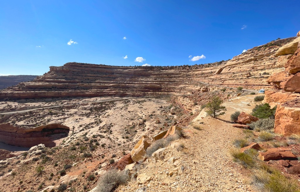 There’s a short path from the van up to the point that overlooks the Valley of The Gods…spent an hour just sitting and looking…I guess you can see for about a thousand miles.