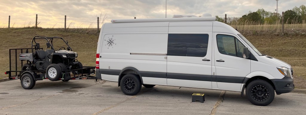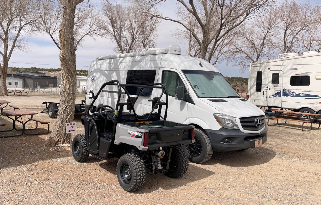 Looking forward to exploring with the new buggy…a Honda Pioneer 520…small, light, and reliable…just like me. The thing only weighs around 1000 pounds…the small 6×10 trailer around 900…I’m well under the van’s recommended towing weight of 5000 pounds. I only drive around 60 mph and am averaging over 15 mpg…I’m happy with that…with the fuel cost these days I’ll spend around $1,000 just to get out to Utah…don’t plan on running around all over the place this time…will stay put for several weeks at a time to save money…that’ll be good in a ways…I’ll have plenty of time to really explore the areas.