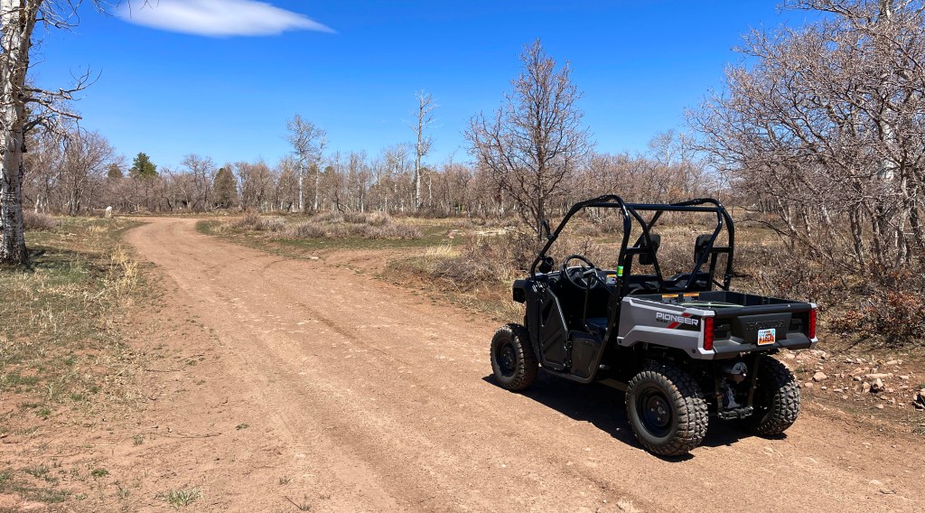 21 April….still windy but otherwise a beautiful day for exploring around the Abajo Mountains with the Pioneer…love the little thing…you observant folks will notice it’s now a plated street legal vehicle here in Utah.
