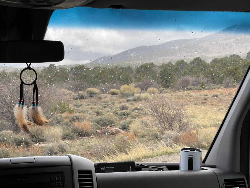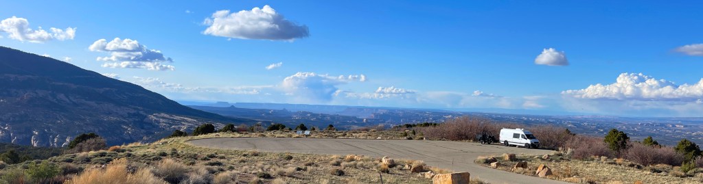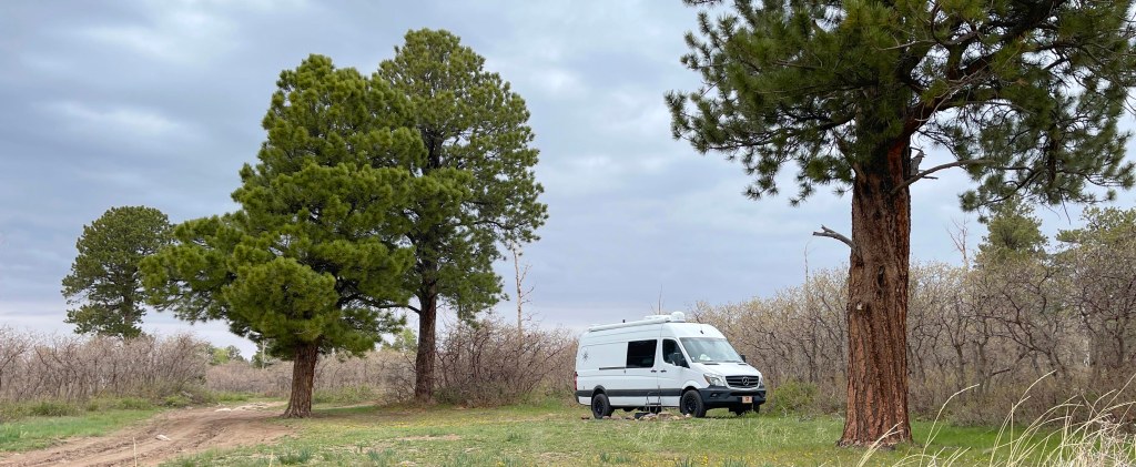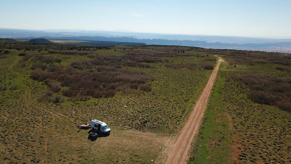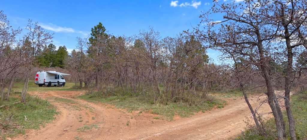 20 May…went into town to the Honda shop this morning to pickup my new CO2/LP detector…so thankful that Brett and Mimi at the shop allow me to have Amazon stuff sent there…got more milk and cookies then headed back up into the Abajo Mountains to another spot for a few days…or a week…I’ve stayed at the spot a few times in the past and it’s really nice…quiet with pretty views…the internet is not as good but I’ve got plenty of time…the elevation is almost 9,000 feet…I have the high altitude module installed for the Espar diesel heater but still at these heights it sometimes struggles to start…always does though so life is good…I’ll be needing it the next few nights…temps are predicted to be in the 20’s…perfect.