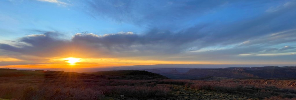 14 May…after two really nice nights at the overlook I decided to move on…and move on I did…drove massive miles…about 1 mile to a little gravel road I found yesterday while looking for good boondocking spots in the buggy…only about 1/4 mile down the gravel to this spot…really lovely with 360 degree views of the La Sals. I’m up wind from the little road and gonna be super quiet with no other traffic.