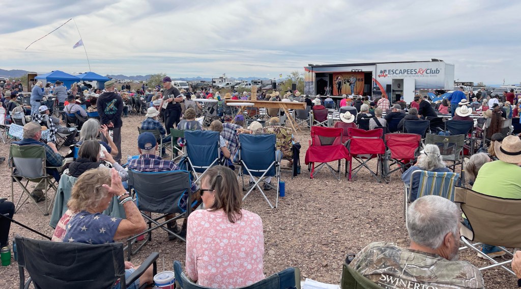 After my shower I got a text from Vee…Kathy and her were at the Escapee’s party a few miles away and told me to come down for a bit…stayed about 30 minutes then headed back to my camp…music was nice but I don’t really like crowds…Vee is headed to Baja and Kathy is going home to Phoenix…wished them safe travels.