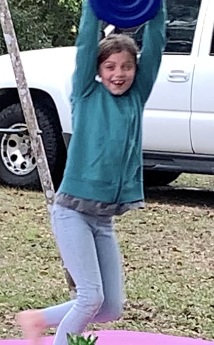23 January Tuesday…pretty lazy day today…rain and cool…got a nice walk in between the storms…the shower tent is all set up…will be a bit warmer tomorrow and no rain forecast so it’s time for a proper shower…still nobody camping near me…nice and quiet…been watching lots of documentaries about the end of World War 2…I would have not enjoyed living through that…love the banana nut muffins from Walmart…coffee and a warm muffin are two of life’s joys…speaking of joy…grabbed a screen shot from a cute video my sister sent me…it’s my beautiful niece playing on her rope swing…I don’t care that the photo is not sharp…her unbridled joy of being a child makes the image one of my favorites.
