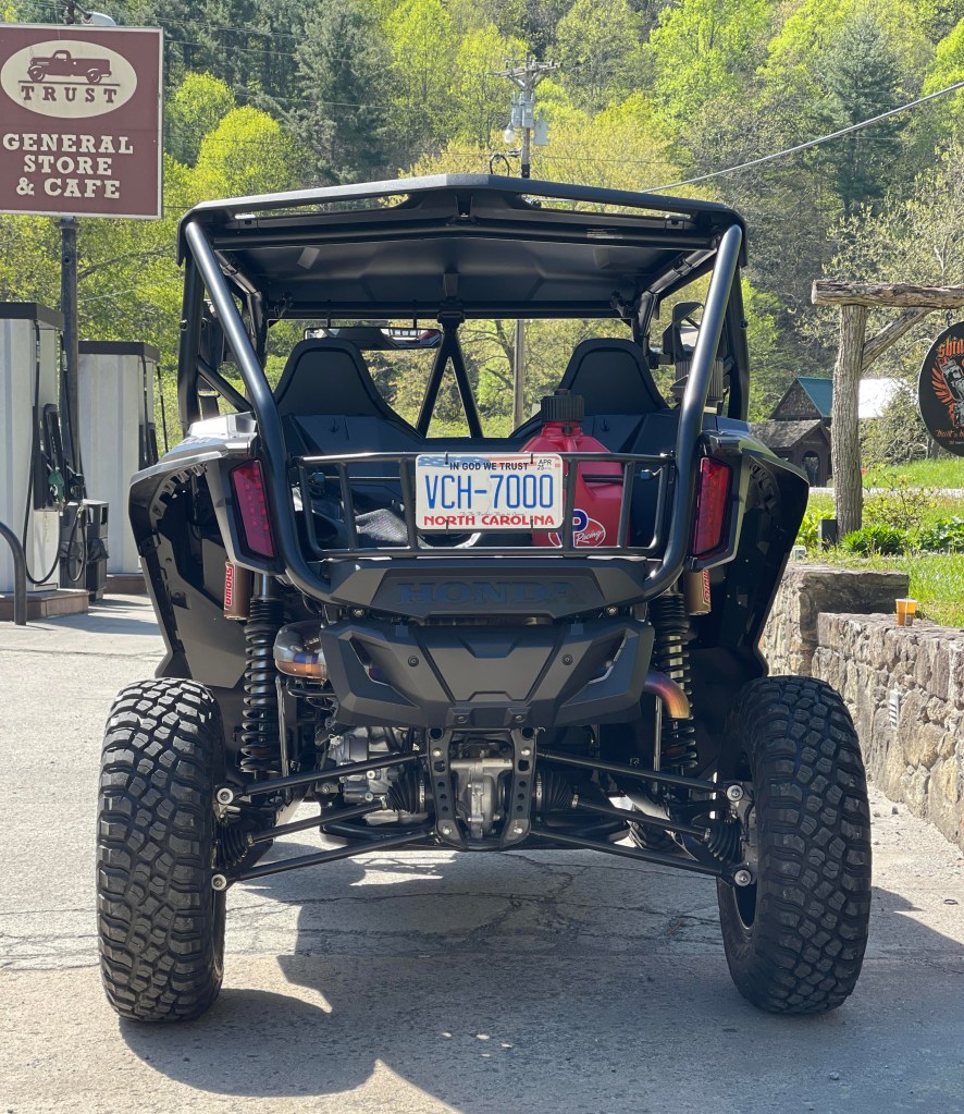 And…took about 15 minutes at the tag office to get my plate…the Talon is now street legal…can’t wait to get the new wheels and tires mounted this afternoon…then it’s time to enjoy the beautiful paved and unpaved roads here in western north carolina…life is good.
