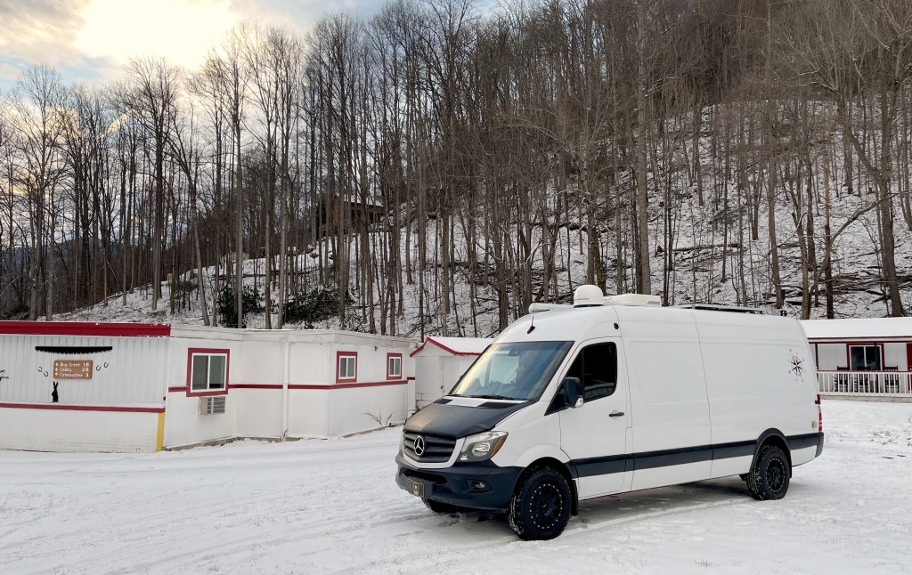 13 January….nice drive from FL to Maggie Valley NC yesterday…weather was great so I drove all the way (550 miles) without stopping for the night…a little chilli this morning here at the motel…27F…snowed before I got here…diesel heater is working perfectly after I fixed the fuel pump connection a few months ago…dentist appt in the morning…I think I’ll drive to the place and spend the night there tonight so I don’t have to bother with traffic…I’ll head over after they close for the day and grab a spot in the back of the parking lot for the evening…should be nice and quiet there.