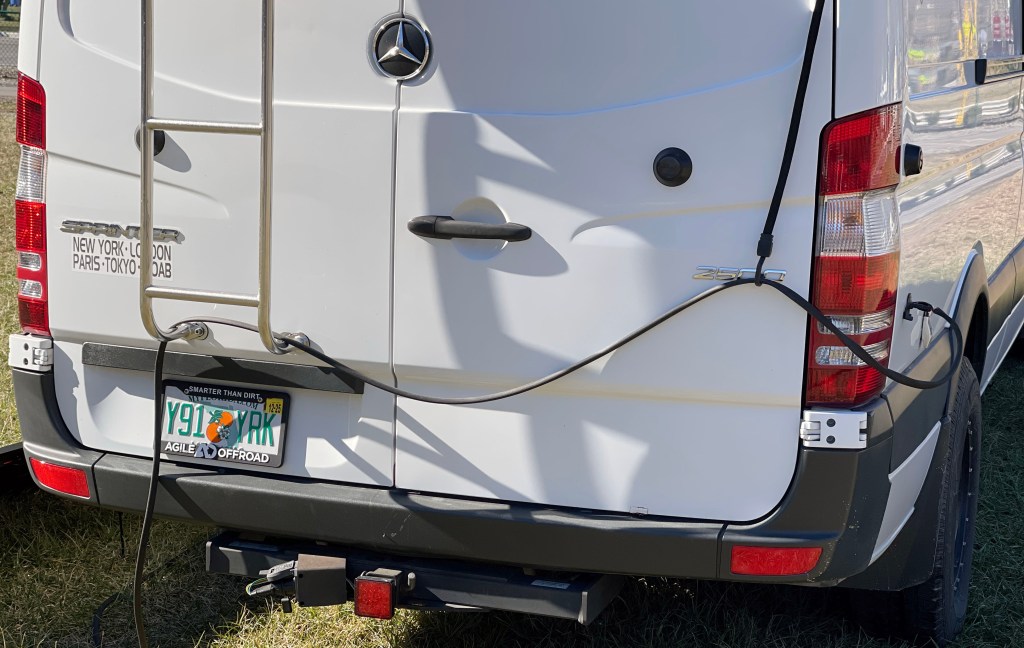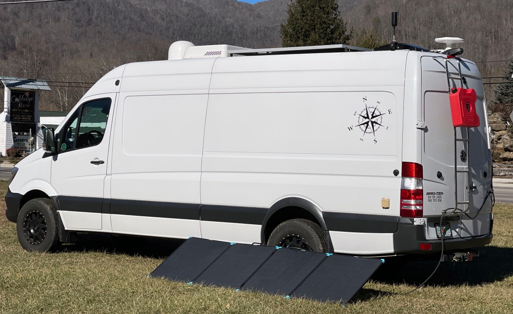 After lunch I headed to the Recreation Center in Waynesville…nice hot showers for $4….then off the Publix to get a few things…set back up in my spot…here’s a shot of the solar panels…400 watts on the roof and 400 watts portable…I’m a bit OCD when it comes to cables and tension on connections…I run the cable from the portables through the ladder then use a bungie cord to keep the tension off the plug where it plugs in to the camper.